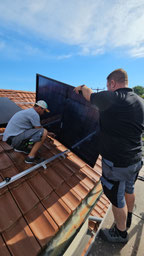 Wir montierten 17 Glas-Glas-Module von unserem Premiumhersteller Solarwatt aufs Satteldach.