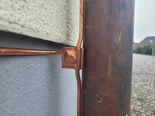 Den Anfang machen wir mit einem Eigenheim in Riesa. Auf Wunsch des Kunden wurde hier komplett mit Kupfer statt Aluminium gearbeitet. Für die neue Blitzschutzanlage mussten nachträglich fünf neue