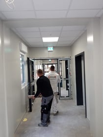 Der Übergangsbau für das Gymnasium umfasst 63 Container und zu unseren Aufgaben gehörten die Elektroinstallationen, Beleuchtung, Sicherheitsbeleuchtung und Brandmeldeanlage.